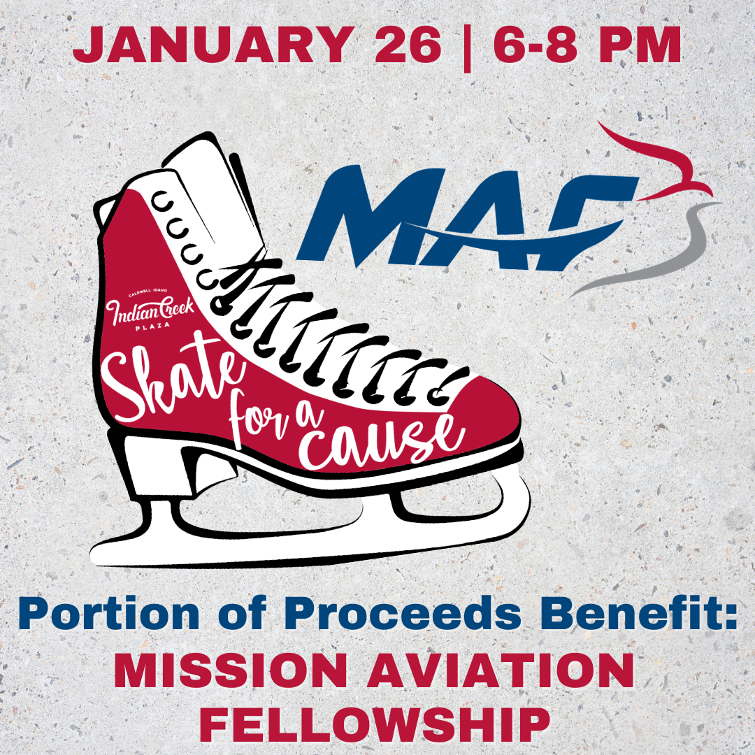 Everyone is welcome to attend our Skate for a Cause night where Indian Creek Plaza and Destination Caldwell share a portion of Ice Skating revenue made during the event with a non-profit organization.