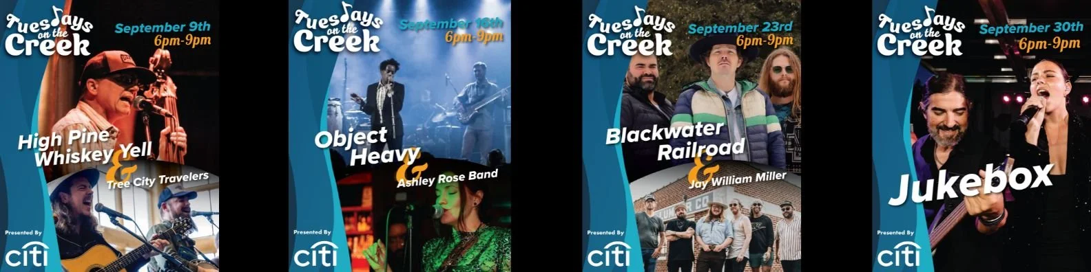 Tuesdays on the Creek, our 20-week concert series that coincides with our weekly farmers market is on its last month! We aren’t slowing down, though. We have some talented and entertaining bands still ahead, as well as some great fall weather to enjoy them.